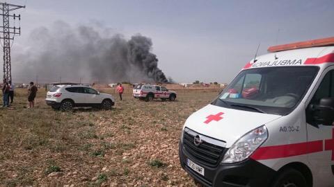 El lugar, ubicado a nueve kilómetros de Zaragoza, fue acordonado por elementos de la Guardia Civil, y en él ya trabajan bomberos de la ciudad y de la Diputación Provincial.