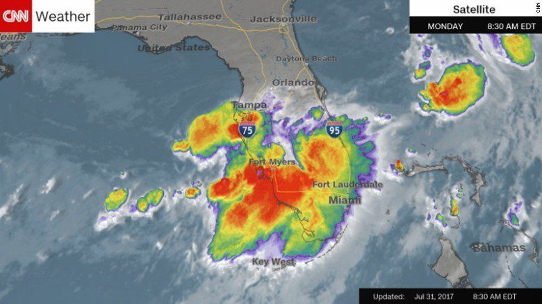 El gobernador de Florida, Rick Scott, declaró el lunes estado de emergencia en 31 de 67 condados del estado a medida que la lluvia se instalaba. El funcionario planeaba acudir al Centro de Operaciones de Emergencia para ser informado sobre el trayecto de la tormenta.