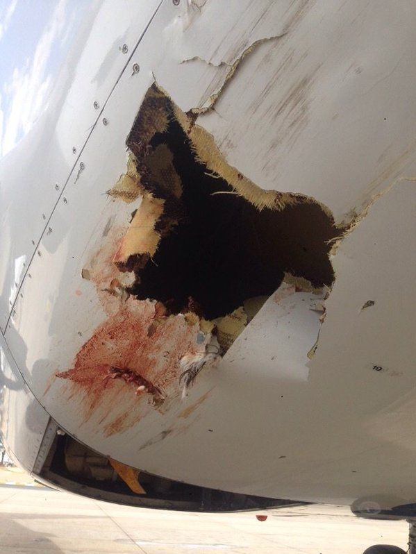 This afternoon we had a bird strike upon landing. We landed peacefully & we are all fine! @Prbeverlyangel #GoodNews pic.twitter.com/sTGx3WYc0d