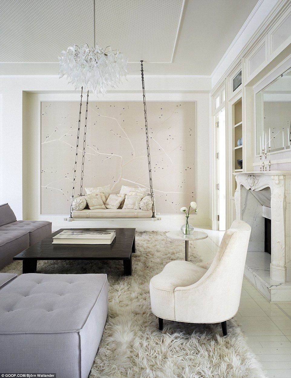 Entre las particularidades con las que cuenta el departamento, se encuentra una cama tan grande que las sábanas tuvieron que ser hechas a la medida, además que predomina el color blanco tanto en sus paredes, pisos y muebles.
