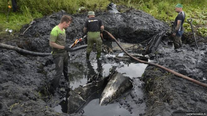 “Por ahora, hemos extraído el panel de instrumentos, el motor, una llanta y el aparato de radio de la nave”, precisó Leszczynski, citado en reportes de la emisora local Radio Polonia.