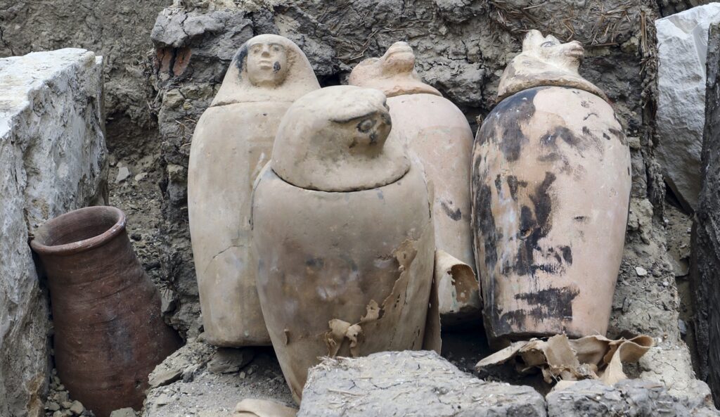 En ambos casos, encontraron una colección de vasijas de barro, entre ellas las utilizadas en la momificación, así como una colección de instrumentos de momificación y vasijas rituales.