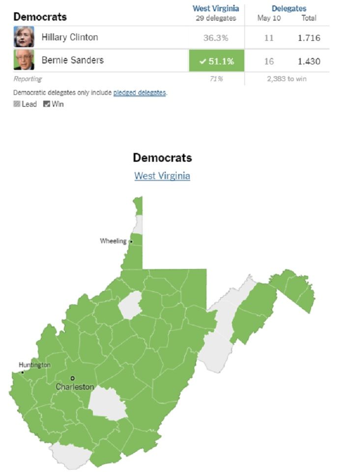 Bernie Sanders puede afirmar que ya tiene un estado más en su lista de triunfos, en este caso West Virginia, pero realmente no le está ayudando mucho a superar la difícil realidad matemática que enfrenta en cuanto al número total de delegados.