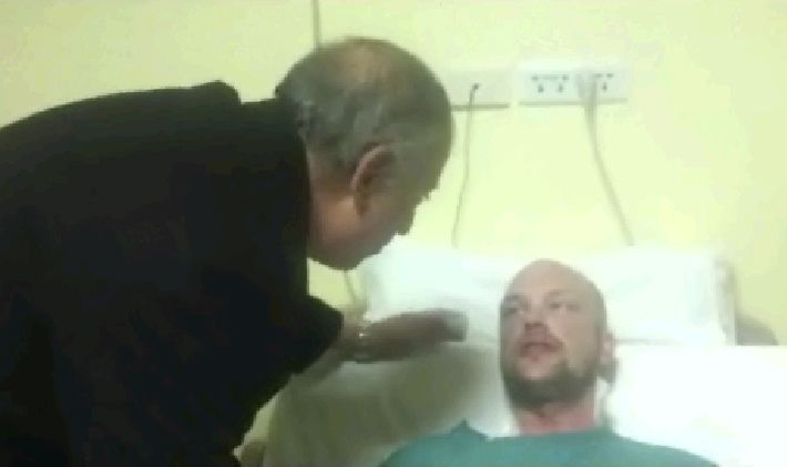 Ahmed Abdullah, visita a Sammie Olovsson, un turista sueco herido en un ataque con cuchillo el 8 de enero, en el resort del Mar Rojo. Foto de AP.