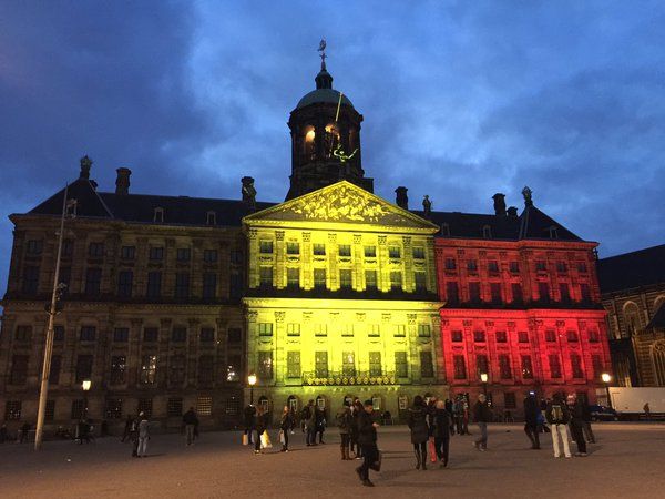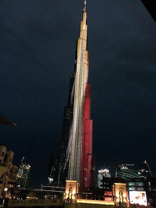 De igual manera, edificios y construcciones a lo largo del mundo se iluminaron de negro, amarillo y rojo, en muestra de apoyo a Bélgica.