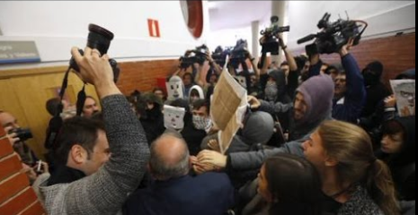 La movilización fue convocada la víspera en redes sociales, con un llamado a impedir su presentación y manifestar su repulsa a González y Cebrián, del que aseguraron que su empresa figura en los llamados “Panama Papers”.