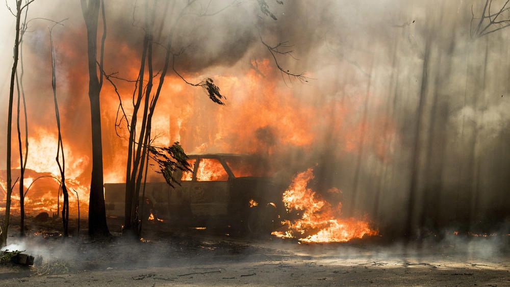 Los vecinos que creían el domingo que el incendio estaba controlado salieron a hacer sus tareas el domingo y al regresar se encontraron con enormes llamas y humo. Algunos trataron de proteger sus viviendas rociando agua con mangueras o con el agua de sus piscinas.