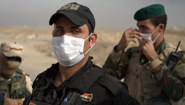 Este sábado, el incendio continúa liberando gases tóxicos, los cuales están mezclándose con el humo negro de pozos de petróleo que también fueron incendiados en la zona, lo que ha obligado al uso de mascarillas a los soldados estadunidenses desplegados en Mosul.