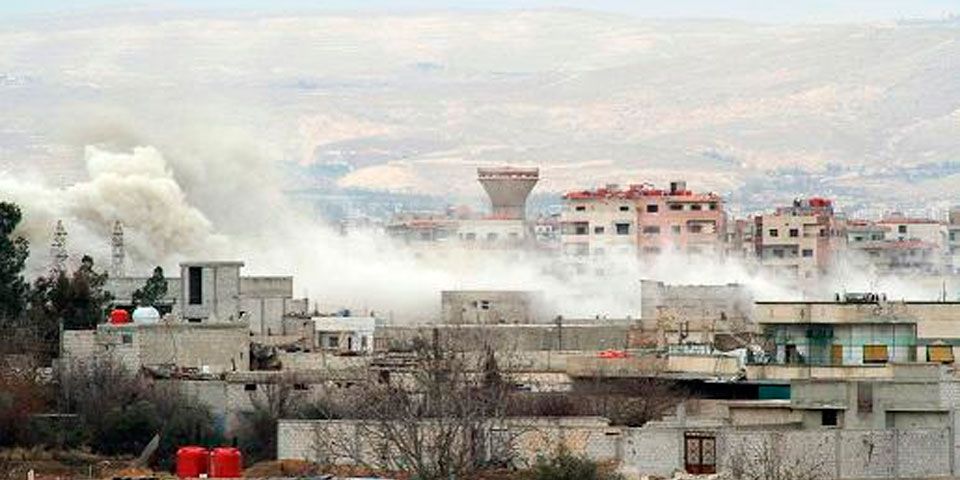 Combatientes de la oposición en los suburbios de la capital habían atacado la embajada anteriormente, pero no estuvo claro si el ataque del martes tenía como objetivo la manifestación.