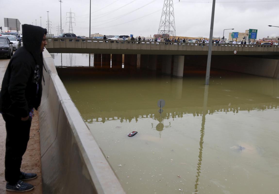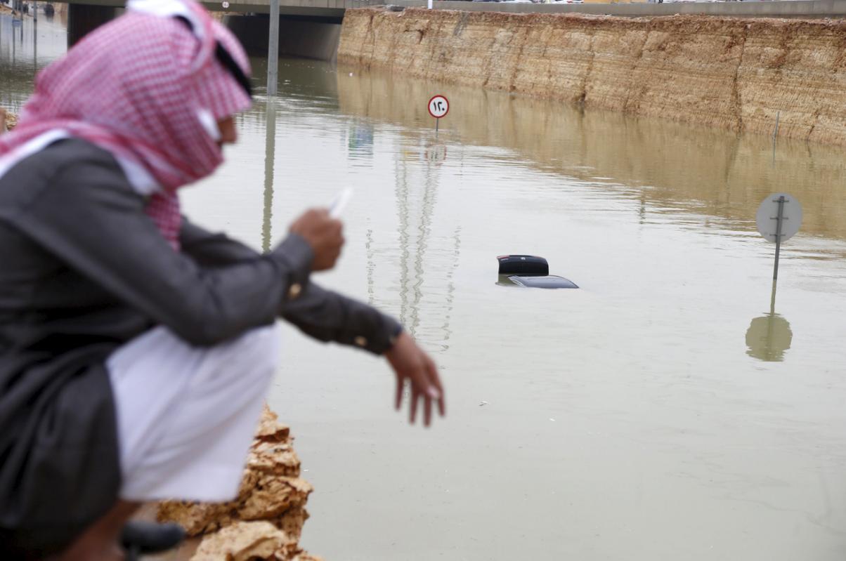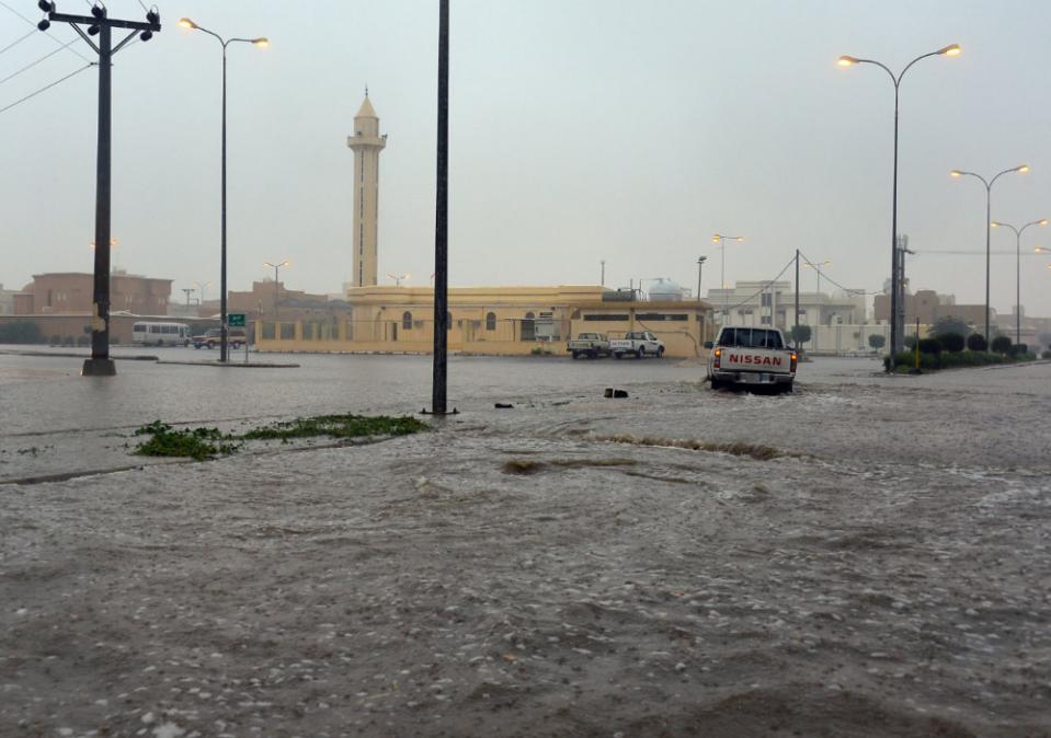 Las inundaciones más espectaculares se produjeron en el reino saudí, cuya capital Riad, sufrió por segundo día consecutivo fuertes precipitaciones con las calles completamente anegadas por las aguas.