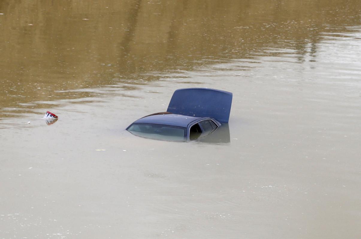 Dos metros de agua cubrían unos diez coches debajo de un puente de autopista en el distrito de Laban, en el oeste de Riad.