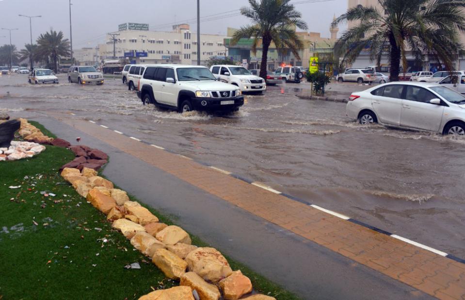 La circulación en las arterias de la capital, una ciudad en pleno desierto de 5,7 millones de habitantes, era mucho más lenta de lo normal y las carreteras secundarias están completamente inundadas.