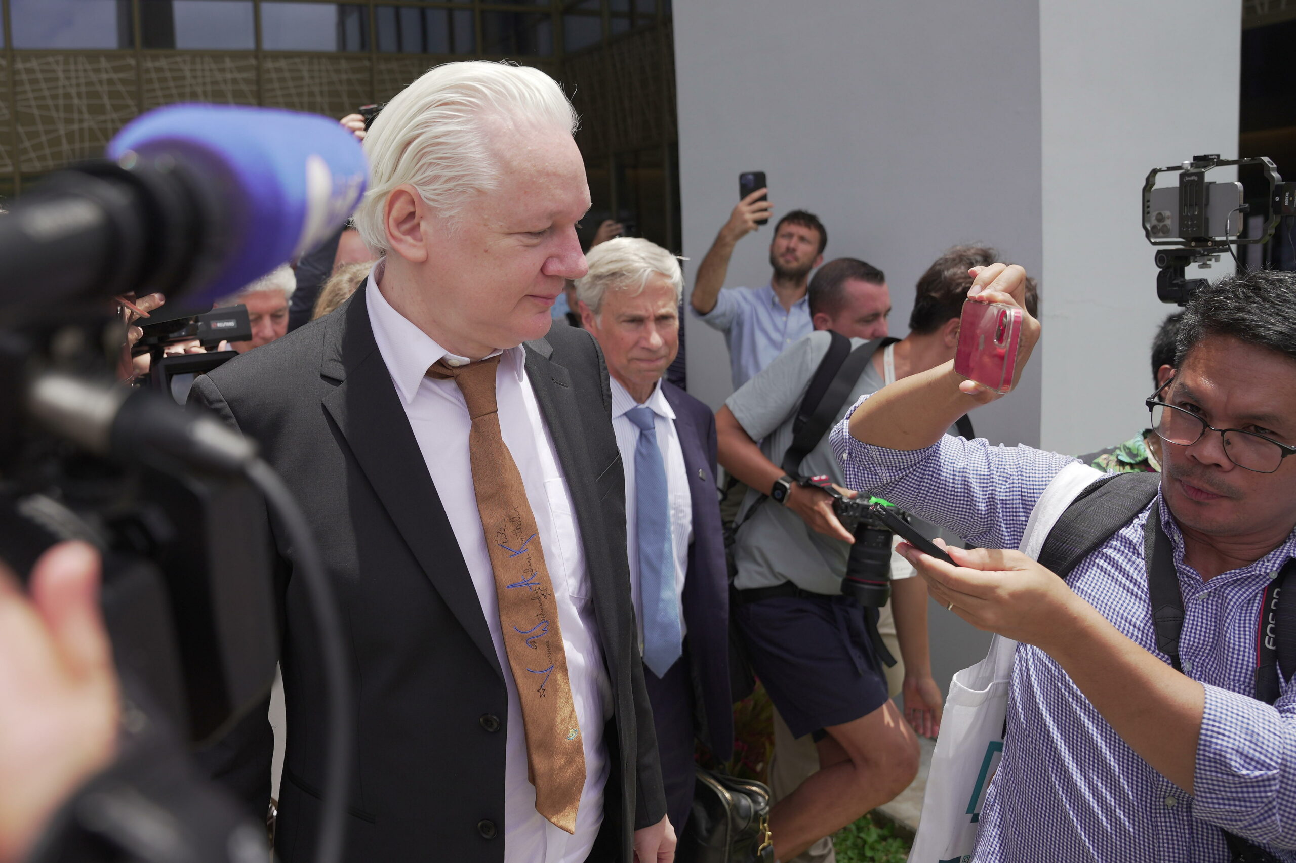 Tras quedar oficialmente en libertad, Assange apreció brevemente ante las decenas de cámaras de televisión que le aguardaban fuera del tribunal federal de Saipán, capital de las Islas Marianas del Norte. Saludó brevemente con la mano a los periodistas antes de subir a un vehículo, sin realizar declaraciones.
