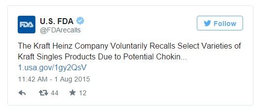 El fabricante de alimentos estadounidense Heinz-Kraft con sede en Illinois, Estados Unidos, anunció que retirará 36 mil paquetes de Kraft Singles American y White American cheese debido a que pueden provocar asfixia.