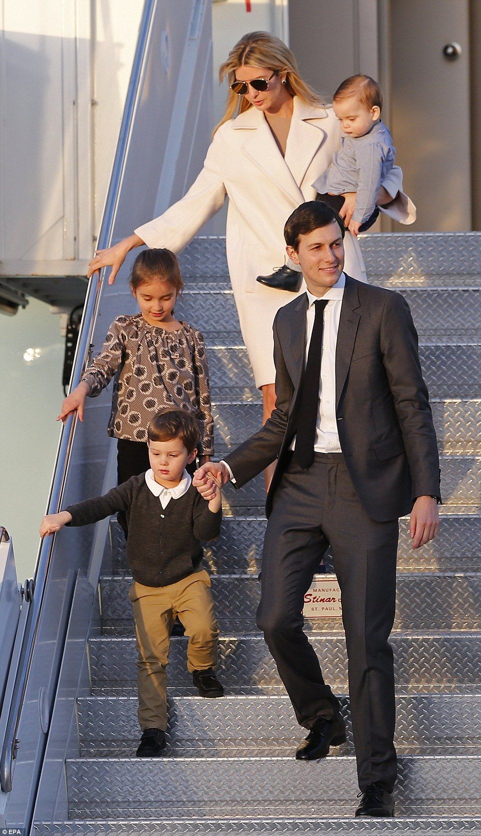 Ivanka Trump, por su parte, abordó el avión en la base Andrews junto a su esposo Jared, el asesor principal de la Casa Blanca, vistiendo un abrigo. La pareja había sido vista en la Casa Blanca este viernes.