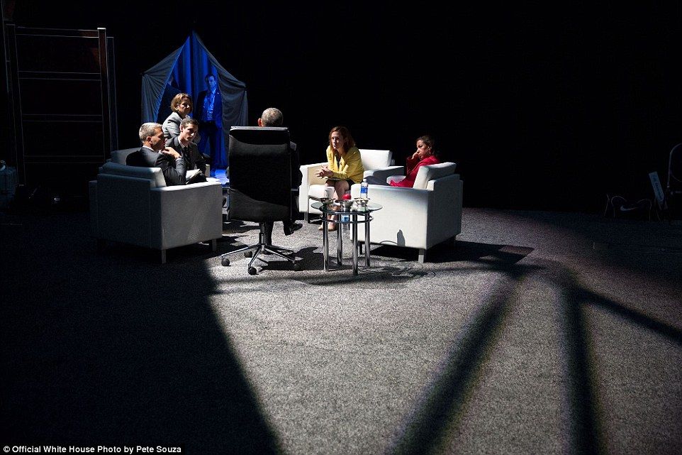 Obama se reúne con Josh Earnest, el secretario de prensa de la Casa Blanca, con su equipo de trabajo la mañana de las elecciones presidenciales