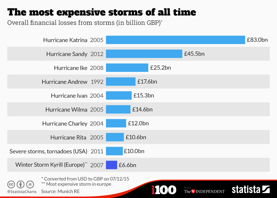 Te mostramos una lista con los huracanes más costosos de la historia.