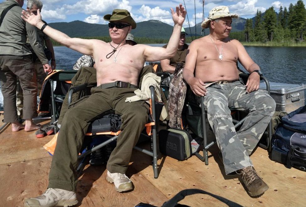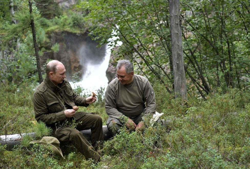 En compañía del ministro de Defensa ruso, Sergei Shoigu, el presidente ha sido captado mientras disfruta de este pequeño receso.