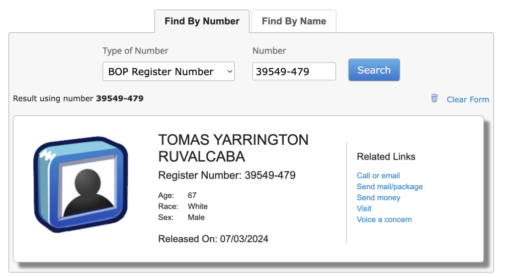 De acuerdo con el registro judicial 39549-479 de la Agencia Federal de Prisiones (BOP) de Estados Unidos, el exgobernador fue liberado el pasado 3 de julio.
