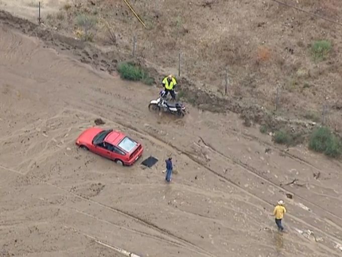 Al lugar acudieron elementos de rescate para salvar a 14 personas que habían quedado atrapadas al norte de la ciudad de Los Ángeles.