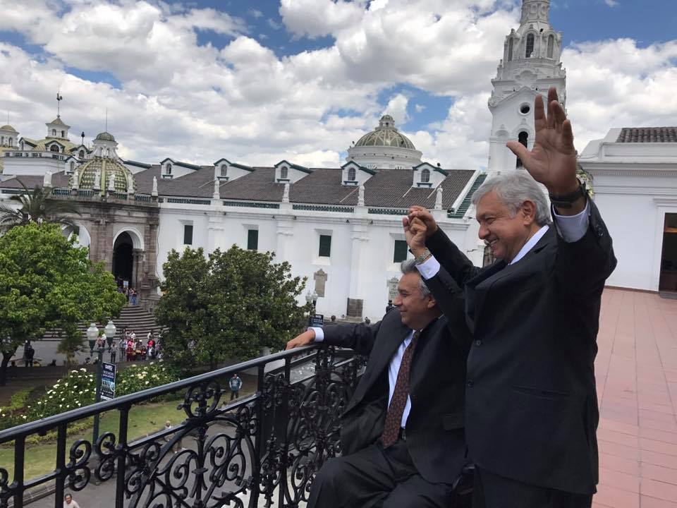 El dirigente de Morena, Andrés Manuel López Obrador, se reunió con el presidente de Ecuador Lenin Moreno para que presentarle su propuesta de proyecto de nación.