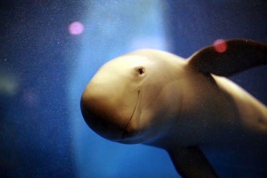 También llamada como panda gigante de agua. Quedan menos de mil ejemplares. La pesca, la contaminación y la construcción de presas son los factores que la ponen su existencia en una situación crítica.