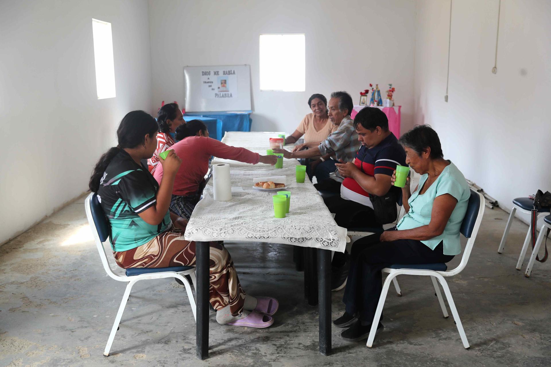 El comedor está rodeado de tierra y ese día regaron abundantemente “para que estuviera verde y bonito para la llegada del obispo”, pero se creó gran cantidad de barro. Detallan que a Prevost no le importó, metió sus zapatos en el fango, y comió junto a los migrantes arroz, ensalada y pollo.