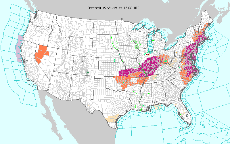 El centro de pronósticos del NWS indicó en su cuenta de Twitter que la “peligrosa ola de calor continuará durante todo el domingo en el este” del país, que en los últimos días, y en especial este fin de semana, se ha visto castigado por este fenómeno.