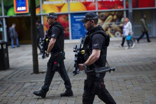 La policía patrulla las calles de Manchester. Foto de AP