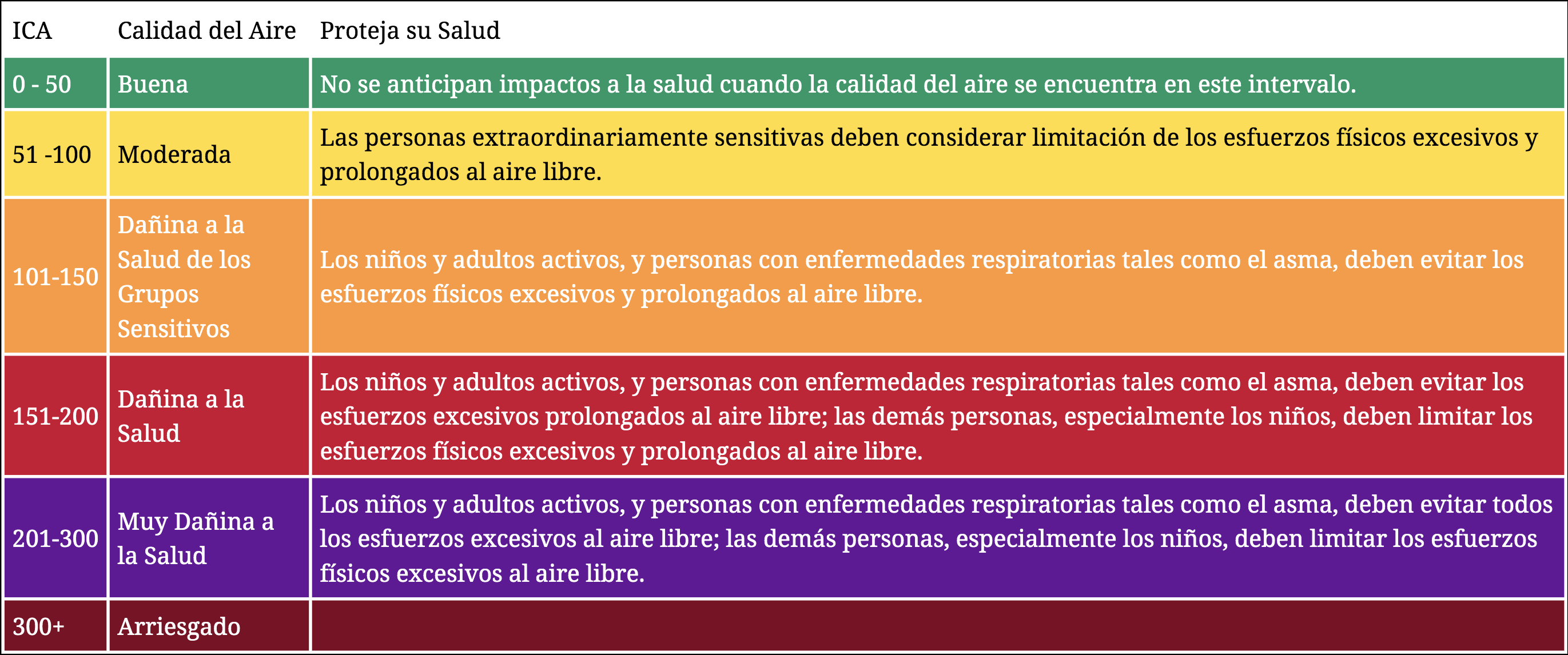 Por último, superando las 300 partículas, se considera a la calidad del aire como “arriesgada”, lo que debe provocar que autoridades activen alerta de salud, debido al riesgo que corre toda la población de experimentar efectos de salud más graves.
