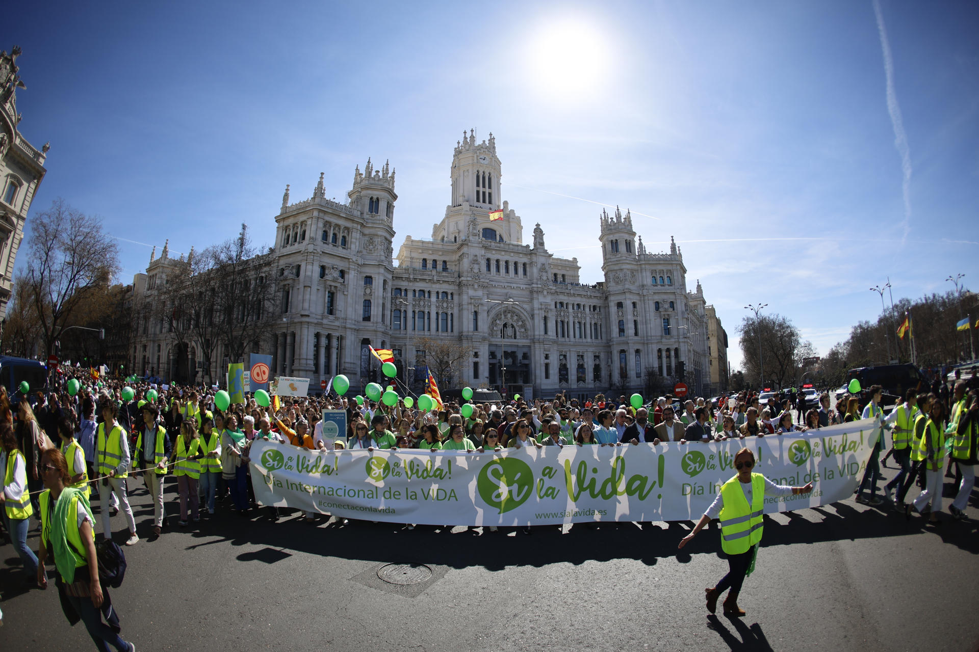 Unas 23 mil personas, según datos oficiales, se manifestaron este domingo en el centro de Madrid a favor de la vida “desde su inicio hasta su fin natural” y para rechazar el aborto, que es legal en España.
