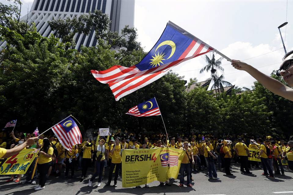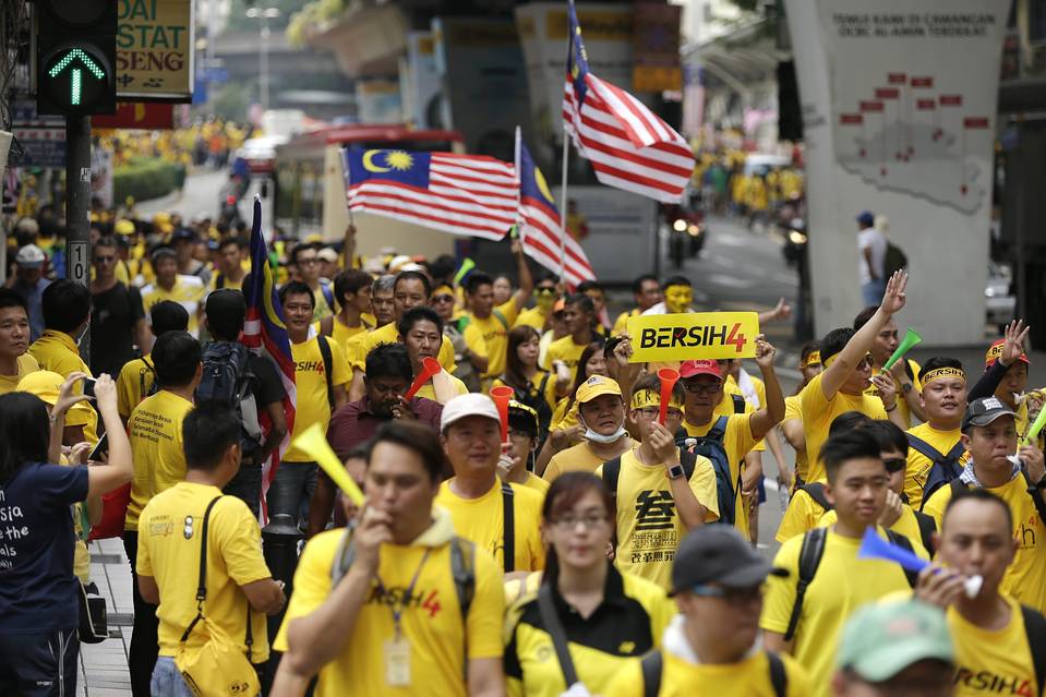 Decenas de miles de malasios vestidos con camisetas amarillas y haciendo sonar cuernos desafiaron a las autoridades el sábado en Kuala Lumpur con una manifestación multitudinaria para exigir la dimisión del asediado primer ministro del país, Najib Razak.