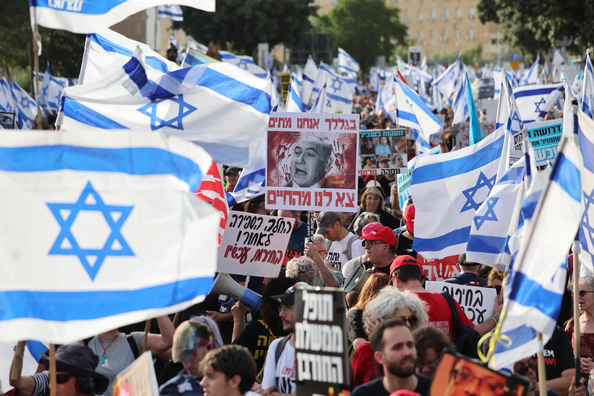 Desde el estallido de la guerra en el enclave palestino, el 7 de octubre de 2023, casi todos los fines de semana se convocan protestas en varios puntos de Israel para pedir la dimisión de Netanyahu y elecciones anticipadas.