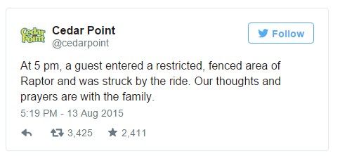 A través de su cuenta oficial de Twitter, el parque anunció el suceso y dio el pésame a sus familiares.