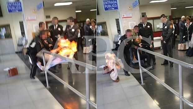 Una mujer de 52 años y con antecedentes psiquiátricos, se prendió fuego en los juzgados de Primera Instancia de Plaza de Castilla, España como protesta ante la notificación para desalojar su casa.