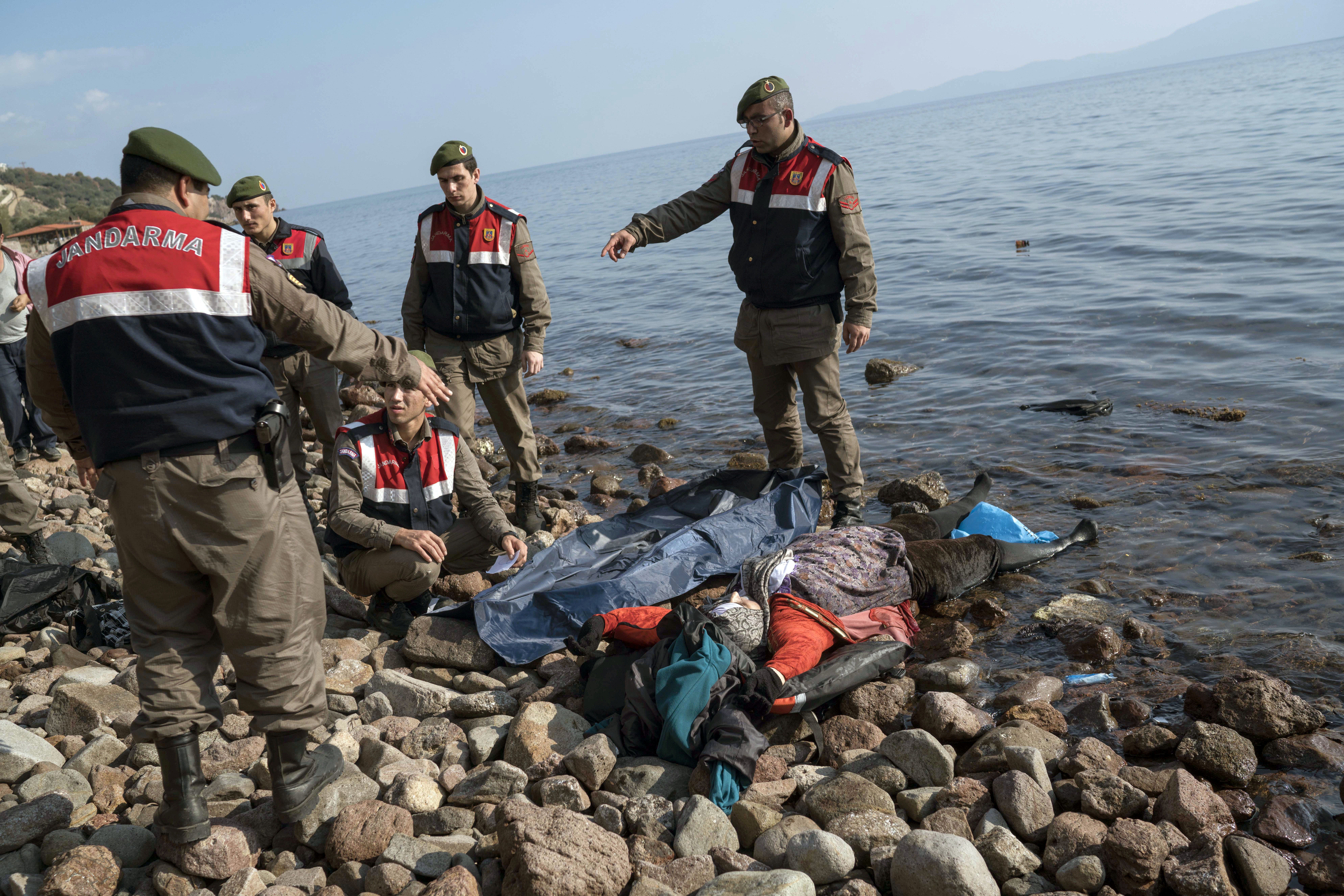 Imágenes de video grabadas en la costa turca mostraron a policías caminando entre varios cadáveres que llegaron flotando, entre ellos el de un niño con ropa azul oscuro.