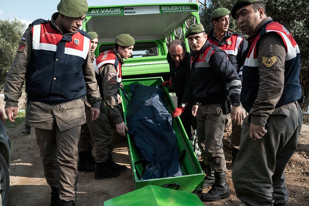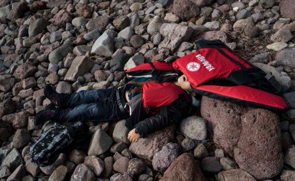 El niño no identificado lucía como si estuviera dormido, pero fue uno de al menos 39 personas que se ahogaron momentos antes cuando su barco chocó contra las rocas y se hundió en la madrugada mientras intentaban recorrer la travesía —engañosamente corta— de la costa turca a la isla griega de Lesbos.