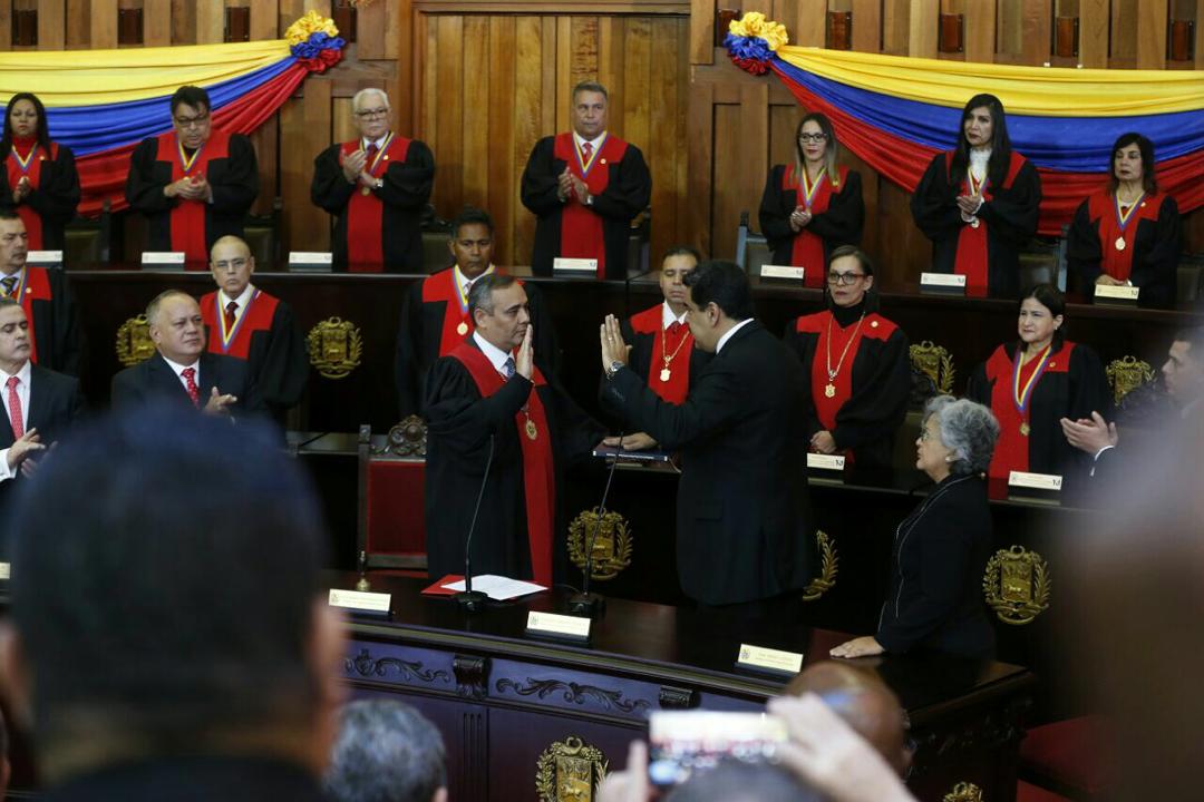 Según la Constitución, Maduro debía juramentarse ante el Congreso, controlado por la oposición, pero el TSJ lo declaró en desacato y fue sustituido en la práctica por la Constituyente, de poderes absolutos.