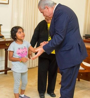 Sophie, la niña de 5 años de padres mexicanos que fue abrazada por el Papa Francisco el día de ayer, se reunió con el Embajador de México en Estados Unidos, Miguel Basañez.