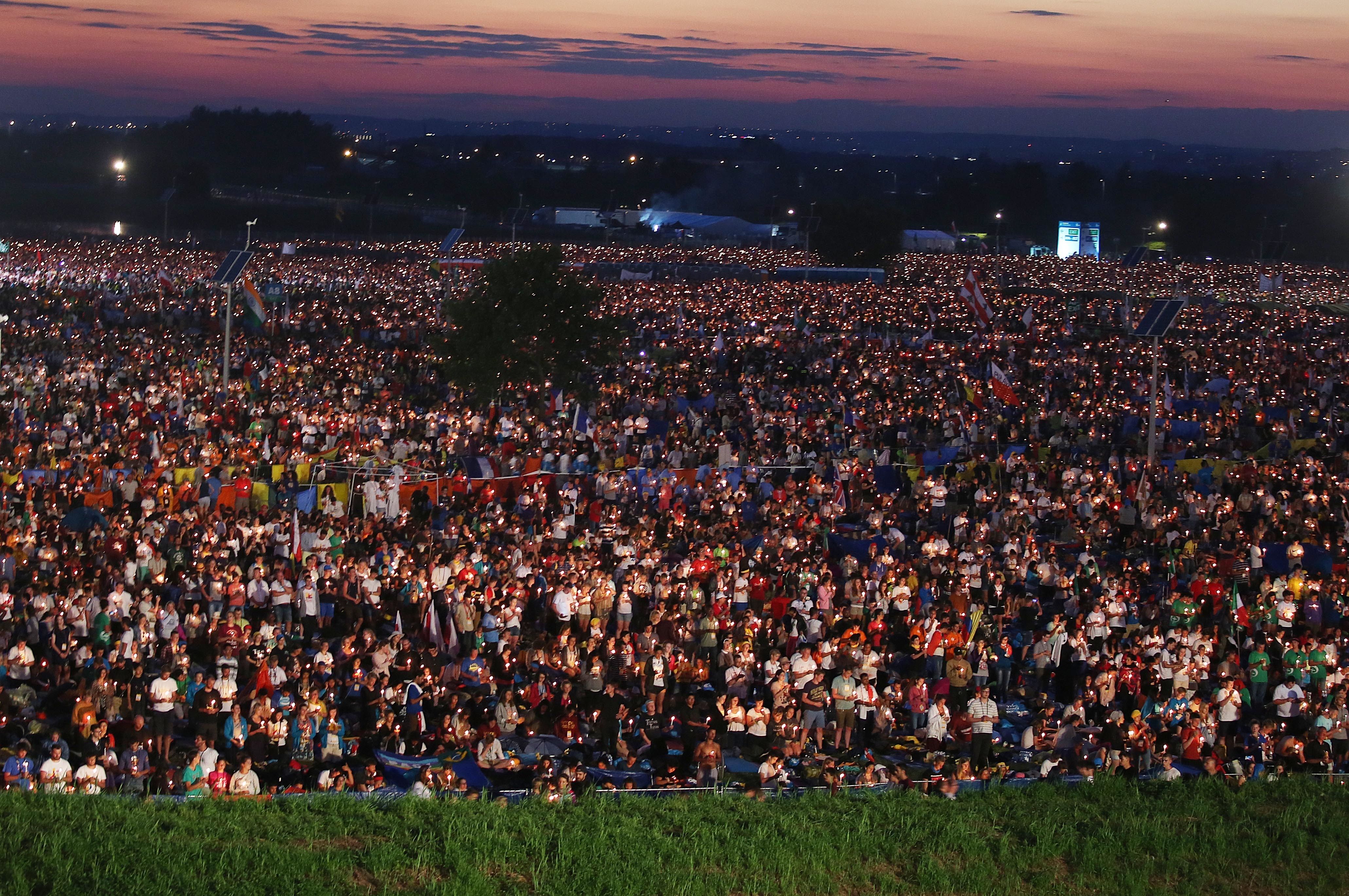 Francisco encabezó esta noche una vigilia festiva y de oración en el Campus Misericordiae, una explanada a las afueras de Cracovia, Polonia, prevista para acoger los eventos centrales de la Jornada Mundial de la Juventud.