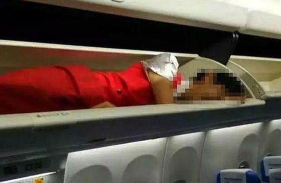 Una presunta novatada de una aerolínea china ha desatado la polémica luego de que se mostrara a algunas de sus empleadas hacinadas en el compartimiento superior para el equipaje de mano.