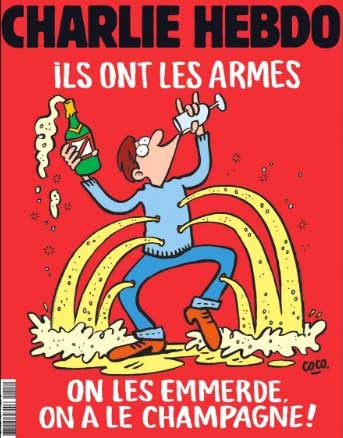 Ilustrada con una caricatura de un hombre que tiene orificios de bala, la portada de Charlie Hebdo ha desafiado a los terroristas