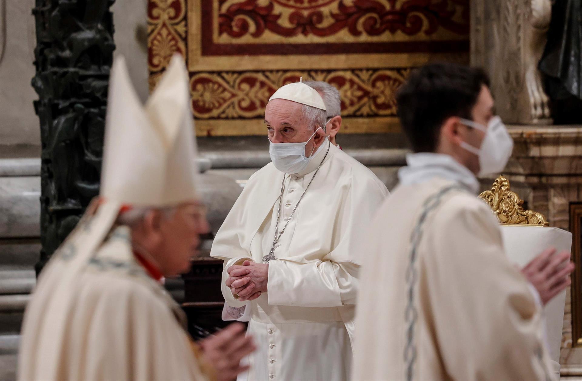 Esta época de pandemia ha aumentado la sensación de desconcierto en todo el mundo. Tras una primera fase de reacción, en la que nos sentimos solidarios en el mismo barco, se extendió la tentación del ‘sálvese quien pueda’. Pero gracias a Dios reaccionamos de nuevo, con sentido de responsabilidad”, dijo Francisco, quien no presidió esta misa en la basílica de San Pedro del Vaticano, como ha hecho en el pasado, sino que asistió sentado.