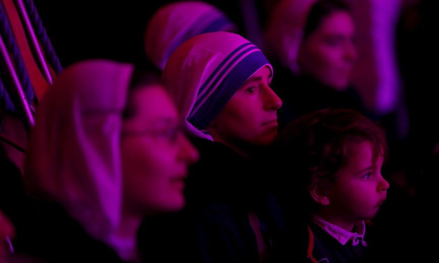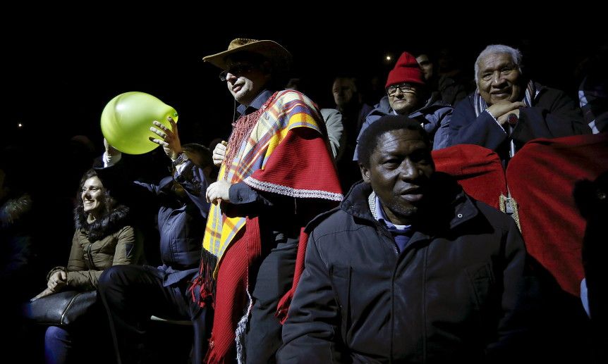Eran personas sin hogar, inmigrantes, mendigos y discapacitados que, acompañadas por religiosas, asistieron al espectáculo desde la primera fila de la carpa, inundada por un intenso olor a palomitas de maíz.