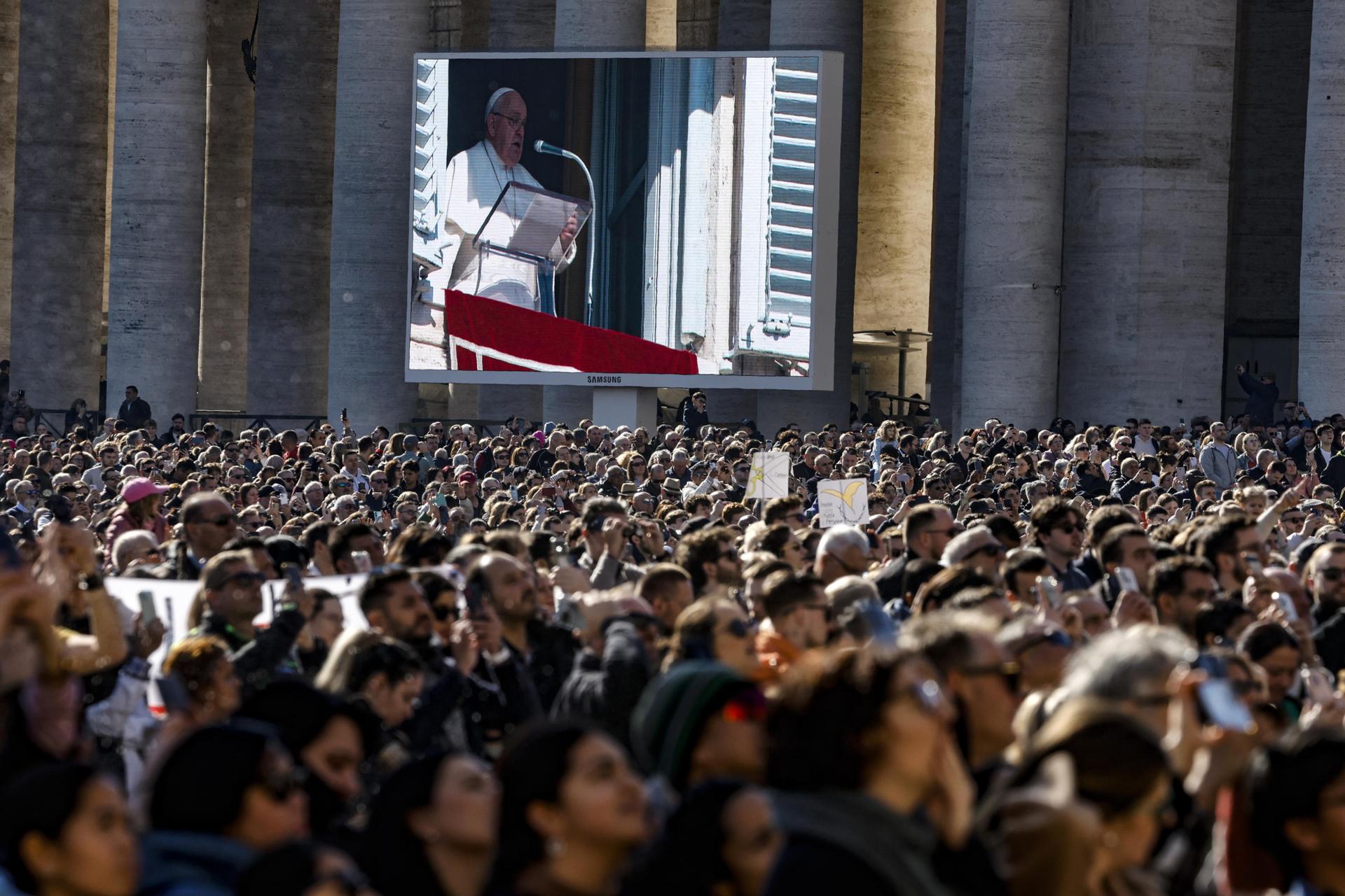 De nuevo, como en todas sus apariciones públicas, Francisco pidió rezar “por las personas que sufren la guerra especialmente en Ucrania, en Palestina e Israel”.