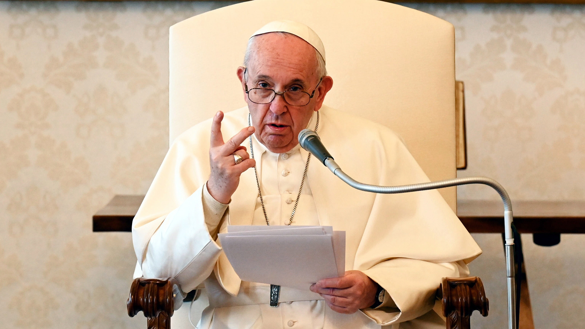 El papa Francisco pidió este miércoles que durante la Semana Santa se recuerde a los “crucificados de hoy”, a “las víctimas inocentes de las guerras, de las dictaduras, de las violencias cotidianas, de los abortos…”, en su catequesis en la audiencia general celebrada sin fieles en la biblioteca del palacio pontificio.