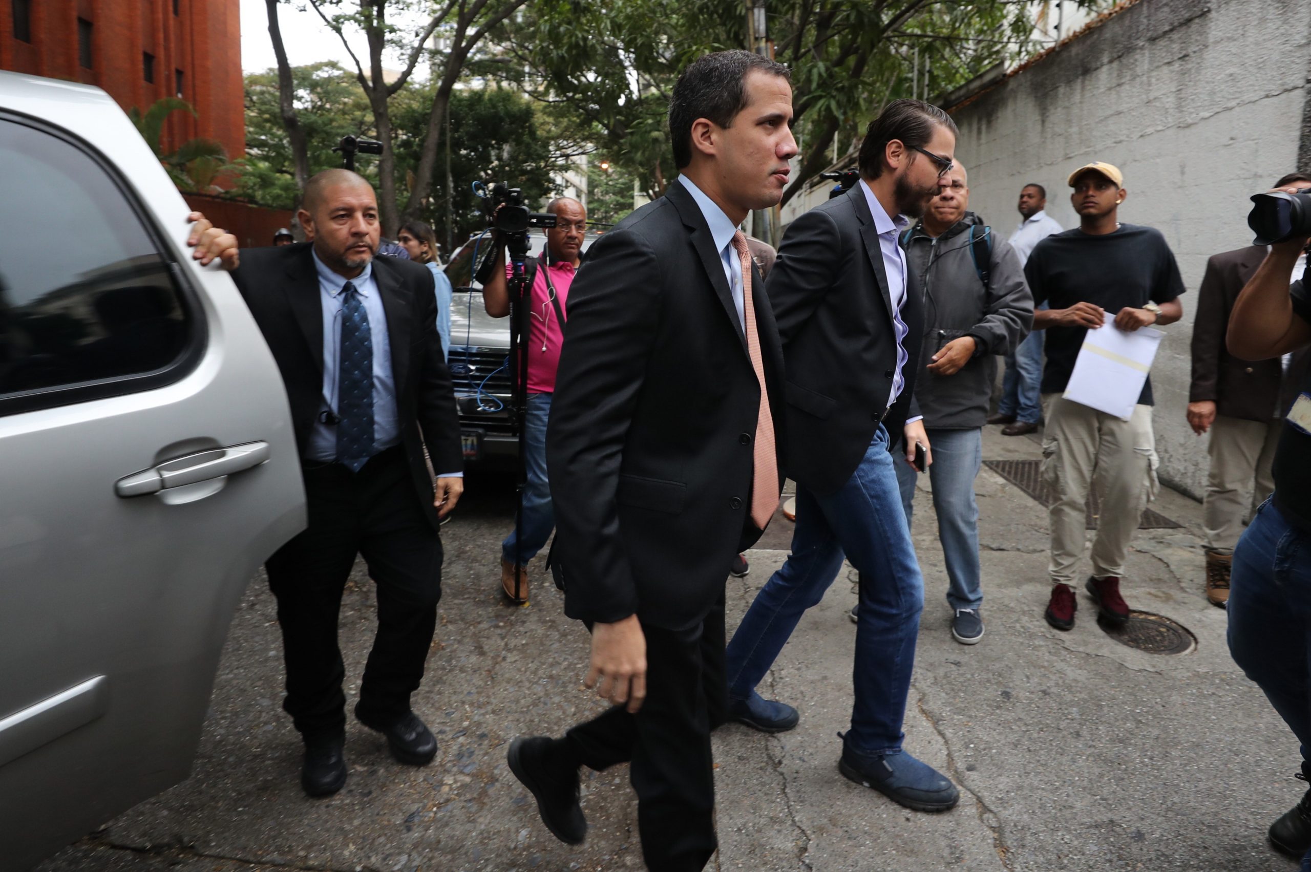 El líder opositor venezolano Juan Guaidó convocó este miércoles una sesión de la Asamblea Nacional (AN, Parlamento) en un anfiteatro de Caracas, luego de que una comitiva de parlamentarios fuera atacada por civiles armados a los que considera paramilitares.