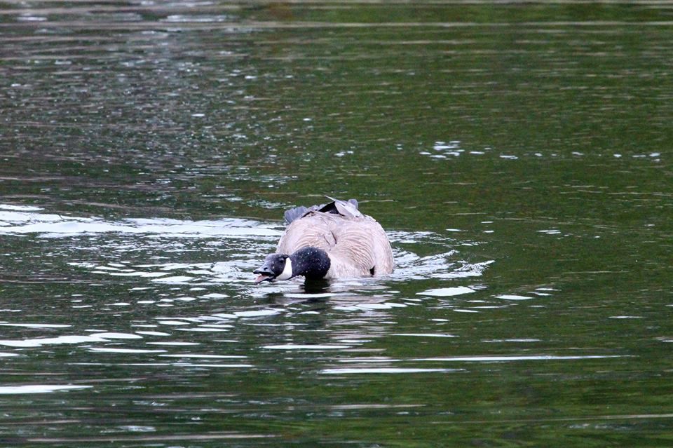 Una fotógrafa captó el encuentro donde el ganso tuvo que hacerse el muero para salvar su vida