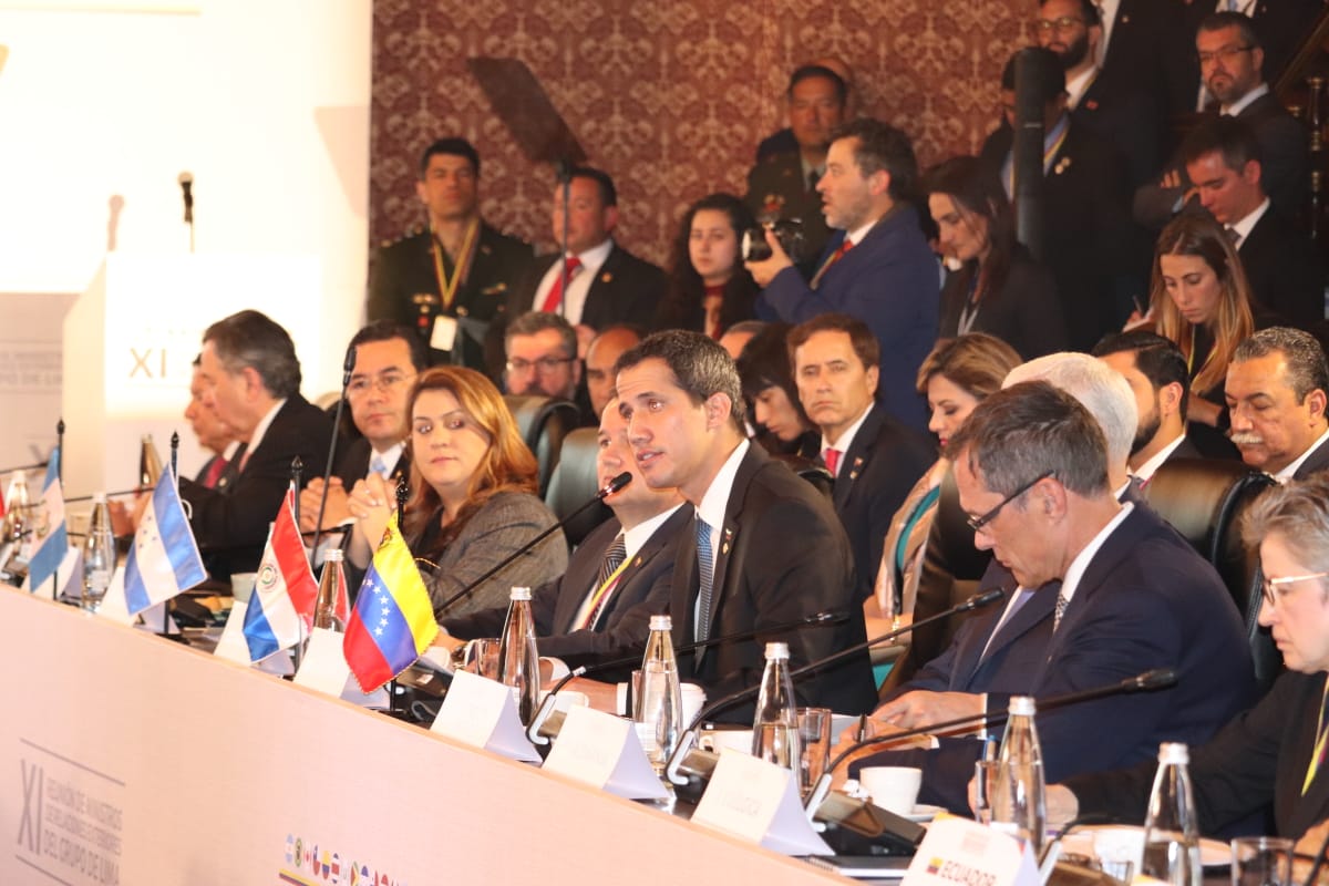 En su intervención Juan Guaidó, reconocido por unos 50 países como presidente interino de Venezuela, pidió el lunes al Grupo de Lima y a Estados Unidos no abrir espacios a Nicolás Maduro, porque -a su juicio- hacerlo pondría bajo amenaza al continente.