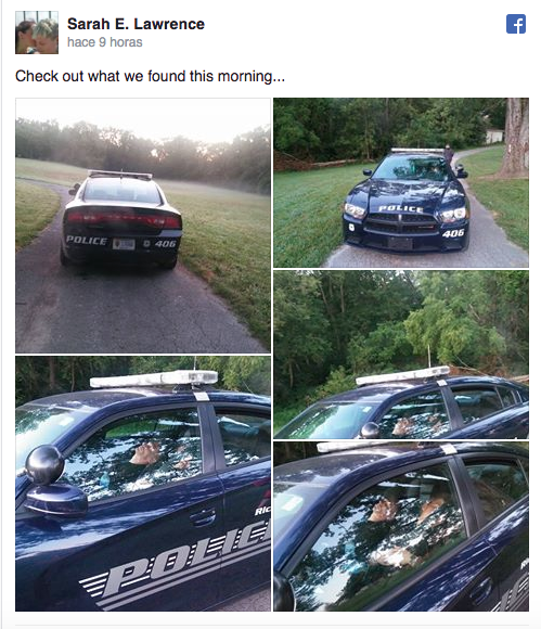 El post incluye varias imágenes de dos oficiales del Departamento de Policía de Richmond, que aún no han sido identificados, durmiendo en un crucero a lo largo de una de las calles del cementerio.